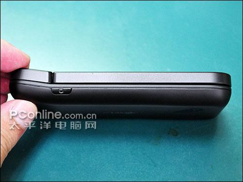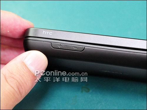 在手机左侧的地方,只有音量调整键而已,并没有其它的部件。而HTC的logo也位于此处,在场的HTC营销部长王景弘说,HTC logo放在这里是有意义的,因为手机正面有T-Mobile的logo、背面有Google的logo,那HTC索性就放在侧面,代表「把T-Mobile与Google连在一起」。