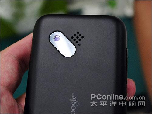 翻到手机背面,靠近顶端的地方有一个300万像素摄像头,原本HTC提供的技术规格中,并没有说明摄像头是否支持自动对焦,但今天我们得到的讯息是,G1支持自动对焦,但没有闪光灯与自拍镜。