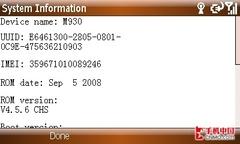 进入“开始—设置—其它—关于”,我们首先能够看到的是华硕M930手机所采用的操作系统为“微软”公司最新推出的Windows Mobile 6.1标准版(Standard)操作系统,是一款采基于Smartphone平台的智能手机(WM6系统不存在Smartphone的说法,这里为了便于大家理解故如此称呼)。