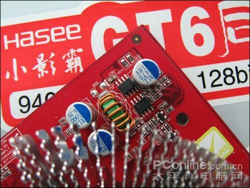 供电方面,小影霸 GT6后羿版 采用常见的核心/显存分离式供电设计。对于9400GT这种低功耗的核心已经够用了。