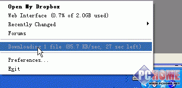 如果你经常需要使用文件同步软件,那不妨就来试试小编推荐的Dropbox吧,方便的操作,不错的上传下载速度(速度可在屏幕图标的右键菜单中看到,图6),相信一定能令你满意的!目前,提供了2GB的网络存储空间,对于一般文件、图片的使用已经足够了。