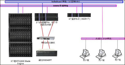 3. 采用刀片机群的方式构建整个系统,相比于传统的RISC小型机具有极高的性价比。