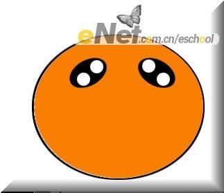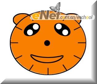 七、使用椭圆工具画出小熊的耳朵,复制、移动得到另一只耳朵,把两只耳朵放置到小熊头上相应位置,效果如[图9]所示;在小熊的中心点用黑色笔刷画出一个小小的正圆,做为小熊的鼻子,效果如[图10]所示