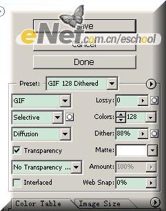 十二、设置【选择帧延迟时间为0.5秒】(这个速度可以自行调节,可快可慢),点击【动画面板-插放动画】按钮,执行【文件-存储Web所用格式】,设置效果如[图16]所示;最终得到最终效果图;