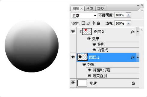 然后在默认状态下,给两个图层分别添加效果,可以看到,由于[剪贴蒙版]的缘故~~ 图层2被图层1的[渐变叠加]样式给 覆盖掉了~~