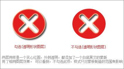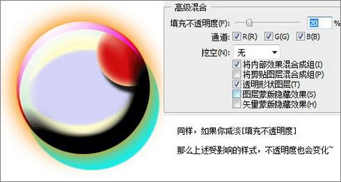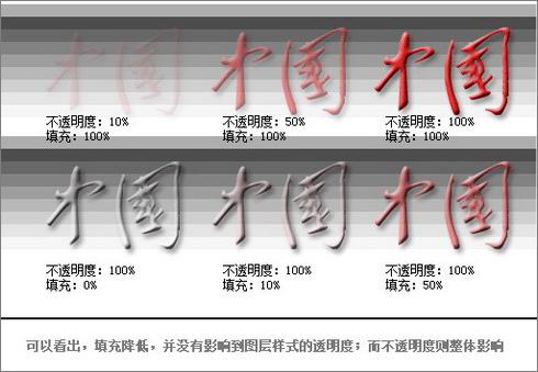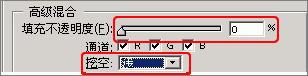 但这个选项只会影响层本身的内容,不会影响层的样式 (这里指默认情况下,其它情况下面将讲到)。因此调节这个选项可以将层调整为透明的,同时保留层样式的效果。