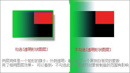虽然默认这个是不勾选的,但很多时候还是要用到勾选。比如用蒙版制造渐隐效果的时候需要把样式一起隐掉。