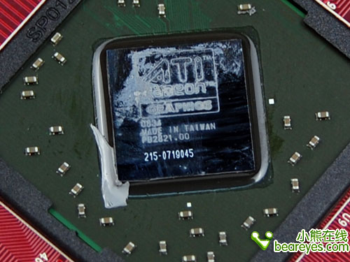 RV730核心采用了斜45°C的封装方式,完全是全新设计的产品。图上为铭瑄 狂镭HD4650高清版核心照片,编号为“215-0719045”,4670的编号为“215-0719040”。