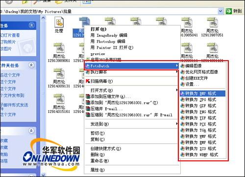 通过WINDOWS右键菜单,您可以不用启动FotoBatch即可完成全部的文件转换功能。