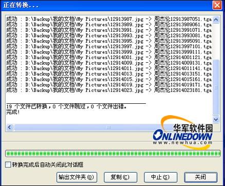 点击“转换”按钮以后,立即弹出转换进度对话框,如果你想停止转换,点击“停止”按钮即可,稍等一会就转换完成了。点击“输出文件夹”按钮即可打开图片保存的文件夹。如图6所示。