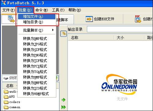 你可以自定义文件名进行批量转换,还可以使用脚本进行批量转换。首先要添加文件,点击工具菜单上的“批量模式”按钮,然后单击“批量”菜单,选择“增加文件”可以增加同一个目录下所有文件;选择“增加目录”可以增加一目录下所有文件,包括子目录。如图3所示。