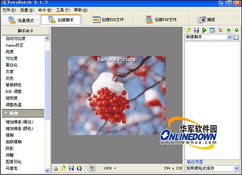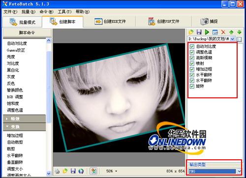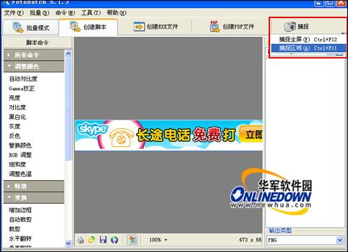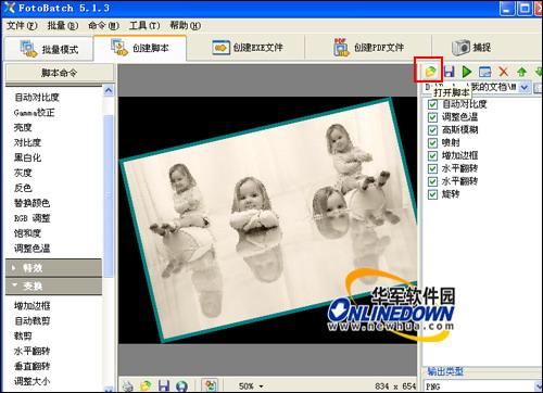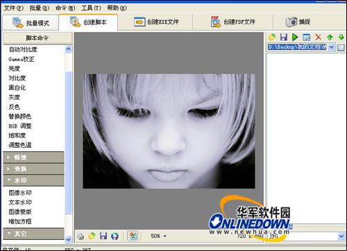 然后选择脚本命令对图像进行编辑,脚本命令将自动记录在右侧的脚本管理列表中,然后再选择图片输出的格式。如图9所示。