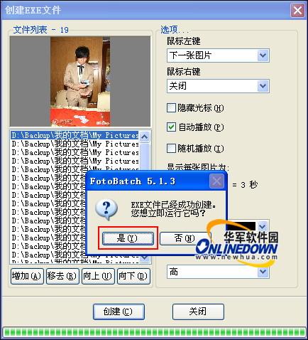 创建EXE文件后,您可以完全脱离图像浏览器进行图像自动播放,也可以作为幻灯片播放。