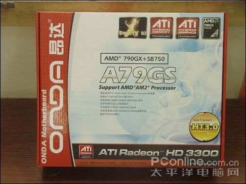昂达A79GS主板基于AMD 790GX+SB750芯片组,支持AM2/AM2+全系列处理器,支持双通道DDR2 1066内存规格。主板提供了6个磁盘接口,4条内存插槽。板载双PCI-E显卡插槽,支持PCI-E 2.0插槽,支持ATI Crossfire交火模式,同时还能支持Hybrid Crossfire,提供给了消费者更多选择。