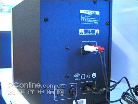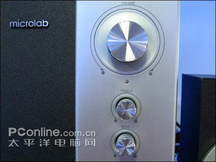 麦博 M-520 08版的主音箱采用内置式低音设计,内部一个4英寸的低频单元,能提供足够的低频效果。而麦博 M-520 08版更提供了高低频两个增益调节旋钮,方便用户按照自身需要调节声音趋向。麦博 M-520 08版三个铝合金旋钮的手感十分良好,而且旋钮的阻尼力度也恰到好处。