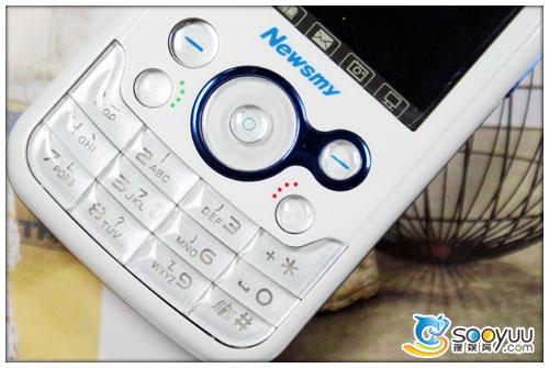 纽曼M600的按键部分也颇具特色,在功能键区,右软键跟导航键之间连在了一起,左右软键和导航键都是圆形按键。