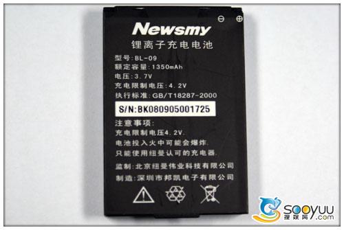 纽曼M600标配是两块1350mAh的锂离子电池,型号为BL-09。像音乐播放这类多媒体功能都是比较耗电的功能,纽曼处于这样的考虑所以配置了两块大容量电池,正常使用两三天还是没多大问题的。