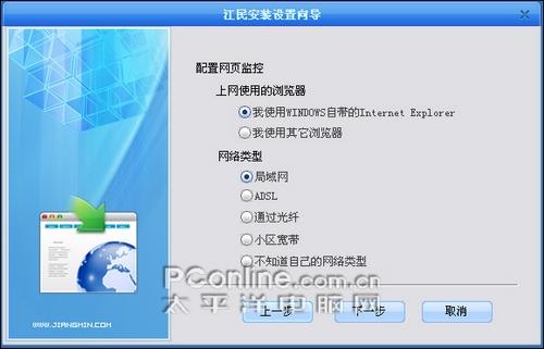 这里笔者和其他网友一样有个疑问,就是配置“上网使用的浏览器”时,比如傲游或世界之窗这些使用IE核心的浏览器我们时应该选择“我使用windows自带的Internet Explorer”还是该选择“我使用其它浏览器”呢?这一点笔者在后来的“监控配置”中找到了答案,原来“我使用windows自带的Internet Explorer”包含了IE及使用IE核心的浏览器。