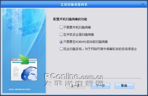 安装完毕,江民2009有个安装配置向导,将引导用户根据自己计算机环境的实际情况来配置江民2009。