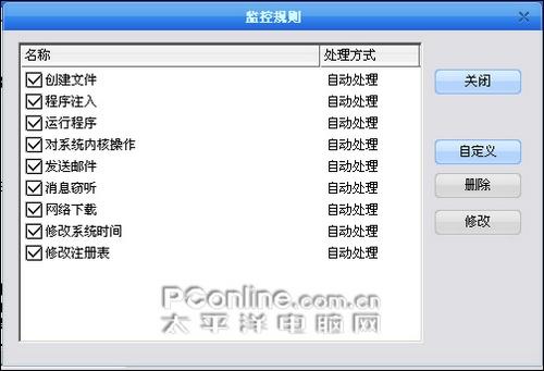 ◆ 规则模式:根据用户选定的规则的要求处理程序的可疑行为。在其“设置规则”选项中用户可以修改需要监控内容及创建自定义的监控规则。