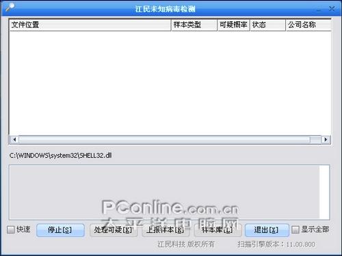 此外,江民2009还增加了强大的启发式扫描和虚拟机脱壳技术,增强了对未知病毒及加壳加花病毒的检测。在此基础上,江民2009还增加了“互联网安检通道”,该功能是指主动防御在拦截到可疑行为时,将接入服务器进行安全验证,基于“云计算”的可疑文件搜集和病毒自动分析系统,生成庞大的黑、白名单库,对可疑行为进行双重比证,如为正常文件则放行,如确认为病毒文件则拦截并提醒用户进行处理。