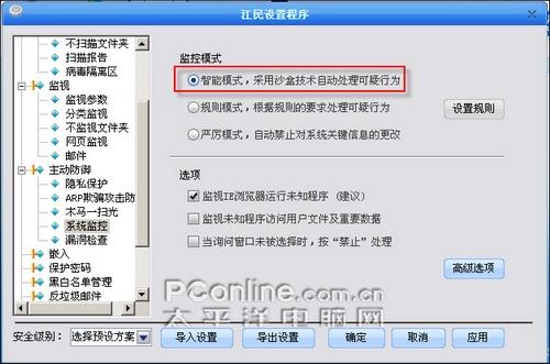 ◆ 智能模式:采用沙盒技术,自动处理可疑行为(推荐)