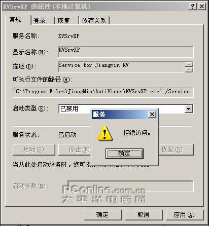 笔者尝试是否可以禁用江民2009的服务。测试结果:拒绝访问