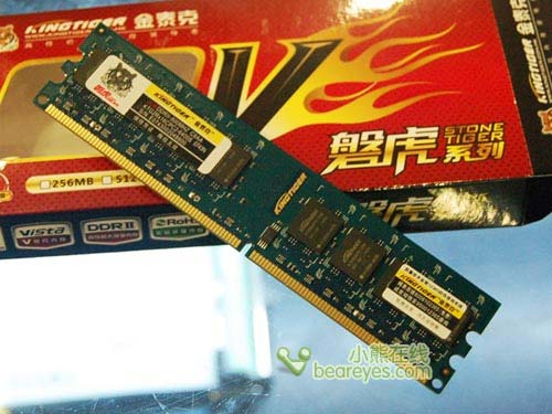 金泰克的2G DDR2 800(磐虎)内存采用高质量八层PCB底板,通过了ROHS无铅认证,是一款环保产品。大量采用蛇形布线及135度折角设计,能够有效防止外来信号的干扰,为内存的稳定性提供了保障。底板中间烫有镏金的Kingtiger字样,格外美观。