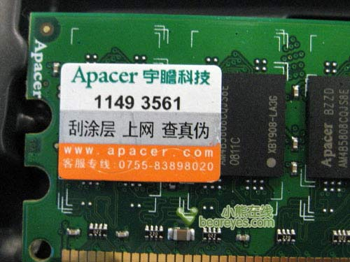 此外,宇瞻的此款内存还享有三年包换、终身保固的宇瞻优质服务。在内存背面贴有宇瞻的防伪标志,只要刮开防伪标志上的刮涂层,上网查询即可辨别内存真伪。这样的设计有效避免了假货的产生,解除了消费者的后顾之忧。