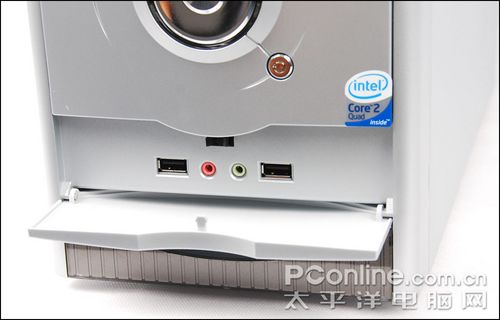 新蓝视点6080的前置接口采用了挡板式结构,这样的设计可以对内部的接口起到很好的防尘作用,不仅如此,它能够体现出主机整体的平滑性。将挡板打开,新蓝视点6080的前置接口配备了2个USB2.0接口、音频接口。