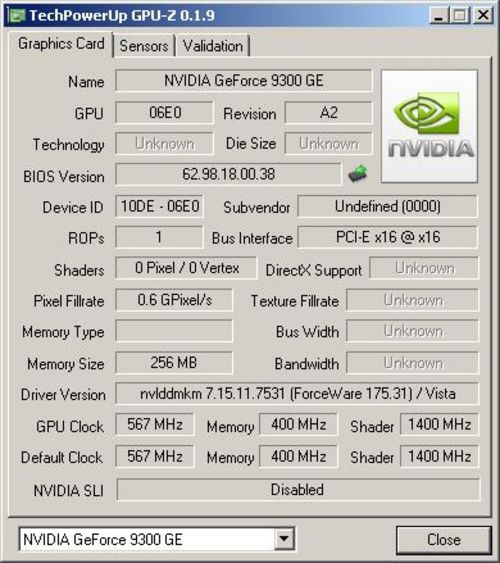 不仅如此,新蓝视点6080配备了NVIDIA GeForce 9300GE 独立显卡,它的显存大小为256MB。NVIDIA GeForce 9300GE显卡性能情况到底如何呢?相信大家和编辑一样充满了好奇,下面我们将有很多的测试项目等着它。