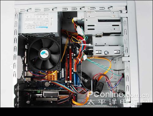 为了让大家对新蓝视点6080有一个较为深入的了解,下面我们就来看一下它的内部结构。整体看来,新蓝视点6080主机内部的空间比较宽敞,这很利于散热性能的发挥。但内部布线有些凌乱,这又会给散热带来一些负面影响。总的来说,新蓝视点6080的散热性表现一般。