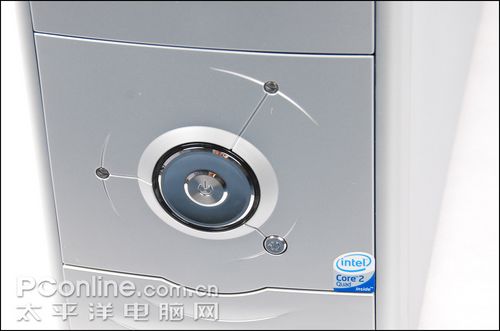新蓝视点6080的开机键位于主机前面,较大的按键非常适合用户的操作使用,但是过大的开机按键无形中也会增加误碰开机键的几率。另外,新蓝视点6080还配备了现在家用台式机较为少见的重启按键,它和两个指示灯组成了一个不规则形状,体现出了新蓝的另类设计。