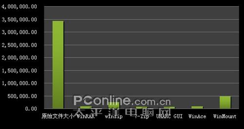 WinMount的压缩率为测试中最弱——但是它的无需解压,把压缩包虚拟成磁盘分区的功能确实很实用。