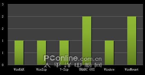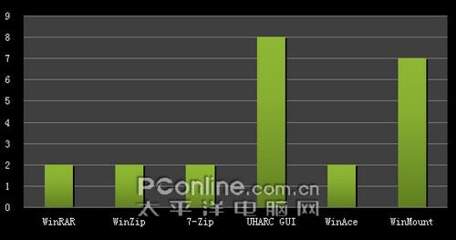 本小结点评:由于UHARC GUI与WinAce没有官方简体中文版,所以在一定程度上限制了其在国内的流行。UHARC GUI的使用界面最简单,功能也最小,只包含了压缩解压及自解压文件(尚待开发)的基本选项。而7-Zip的界面相对其它几款软件来说是比较简陋的一个。而WinMount包含了三种视图模式,用户需要在“选项→视图”中才能进行切换。WinZip与WinRAR的界面较为友好。