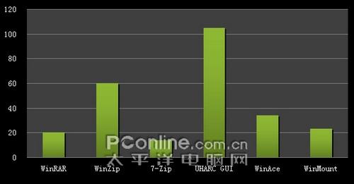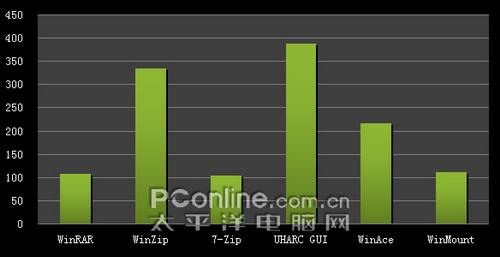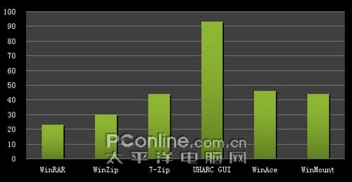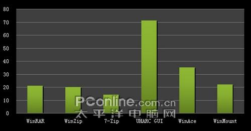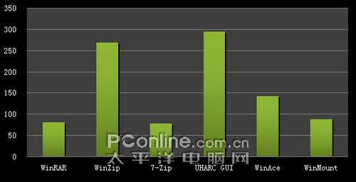 三、压缩选项:不同的压缩软件在进行压缩时可以选择不同压缩方式的选择,在测试中所有压缩文件进行压缩时均选择最好(最高)的压缩方式来进行测试。除此之外,各压缩软件的配置均为默认。而压缩格式上,各压缩文件均选择压缩成它们最擅长的压缩格式。即WinRAR压缩成rar格式,WinZip压缩成zip格式,WinAce压缩成ace格式,7-Zip压缩成7z格式,UHARC GUI 压缩成uha格式,WinMount压缩成mou格式。