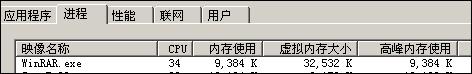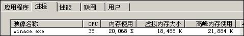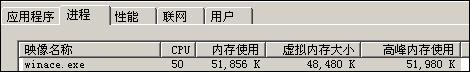 WinAce 压缩时:CPU占用高峰时53%,维持在45-50%之间,高峰内存使用53M,平均内存使用50-53M。