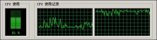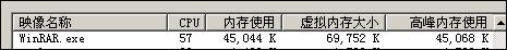 WINRAR 压缩时:CPU占用高峰时87%,维持在70-80%之间,高峰内存使用59M,平均内存使用55-59M。