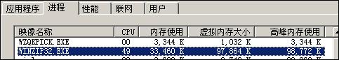 WinZip 压缩时:CPU占用高峰时54%,维持在40-50%之间,高峰内存使用91M,平均内存使用30-40M。