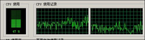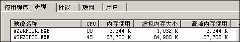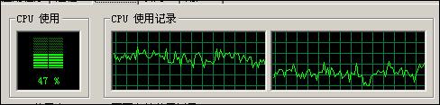 解压时:CPU占用高峰时45%,维持在30-35%之间,高峰内存使用9M,平均内存使用8-9M。