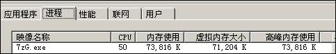 解压时:CPU占用高峰时50%,维持在40-50%之间,高峰内存使用73M,平均内存使用70-73M。