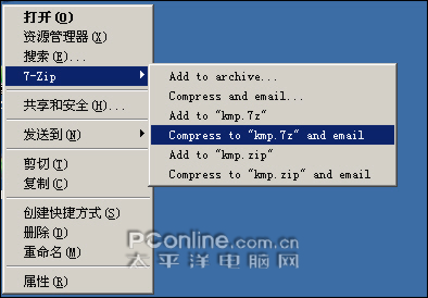 图13 7-Zip右键菜单压缩选项 官方汉化不完整
