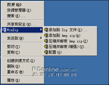 图10 WinZip 右键菜单压缩选项