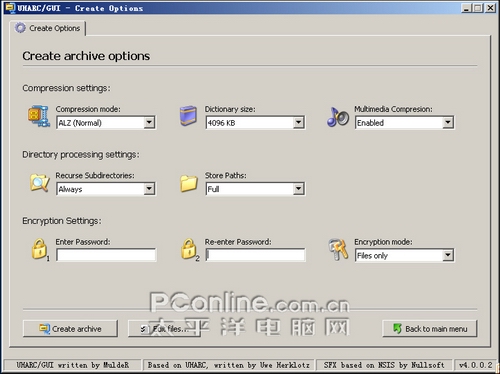 UHARC GUI虽然压缩率值得称赞,但是所需要的压缩时间却是所有软件中最长的,同时它也是兼容性与操作性最差的。一般只作高强度压缩存储。
