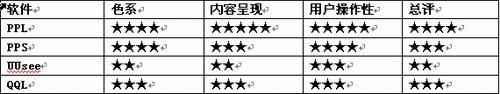我们看了下,。虽然PPL界面、操作性方面略胜一筹,不过还是需要继续努力。PPS相比较而言,最近没有更多的创新与发展,需要继续努力,QQL则整体偏于平淡,而UUSee则是综合比较差劲的。