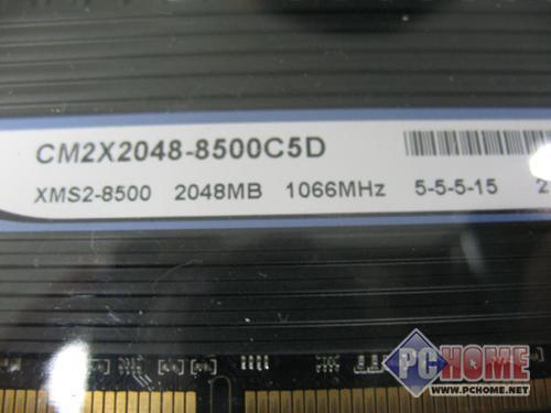 这款海盗船DDR2 1066 4G套装具体型号为CM2X2048-8500C5D是由两条2G容量的内存组成4G双通道套装。