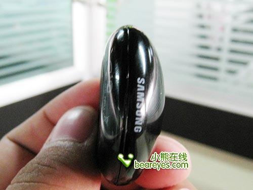 三星S2采用鹅卵石造型,圆润扁平的机身令人爱不释手,如果与鹅卵石放在一起的话,真的可以以假乱真。S2提供黑、白、红、绿、紫5种色彩的款式,整体外形尺寸为16.7×42.5×47.5mm,重约30g,体型小巧可爱,携带起来十分方便。机身通体采用塑料材质制成,表面经过钢琴烤漆工艺处理,手感光滑细腻,质感非凡。