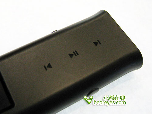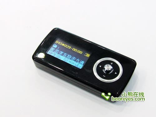 机身正面板上分布着一个圆形的五维导航键,按键同样采用塑料材质制成,手感柔软舒适,灵敏度很高,操作起来倍感轻松。按键符合人体工程学设计,单手就可以完成全部操作,即使是手型较大的人也不易出现误操作现象。机身顶部的按键可以快速选择播放模式,使用起来非常方便。