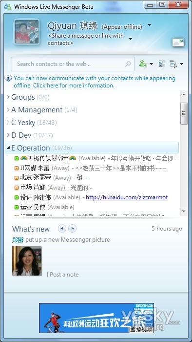 Windows 7中Windows Live Messenger主界面