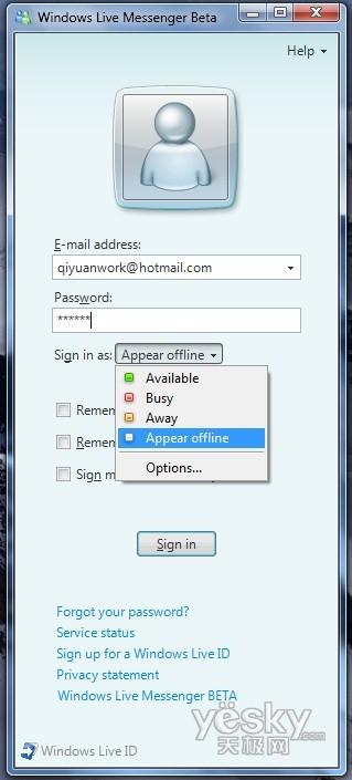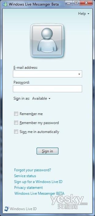 Windows 7中Windows Live Messenger登陆界面